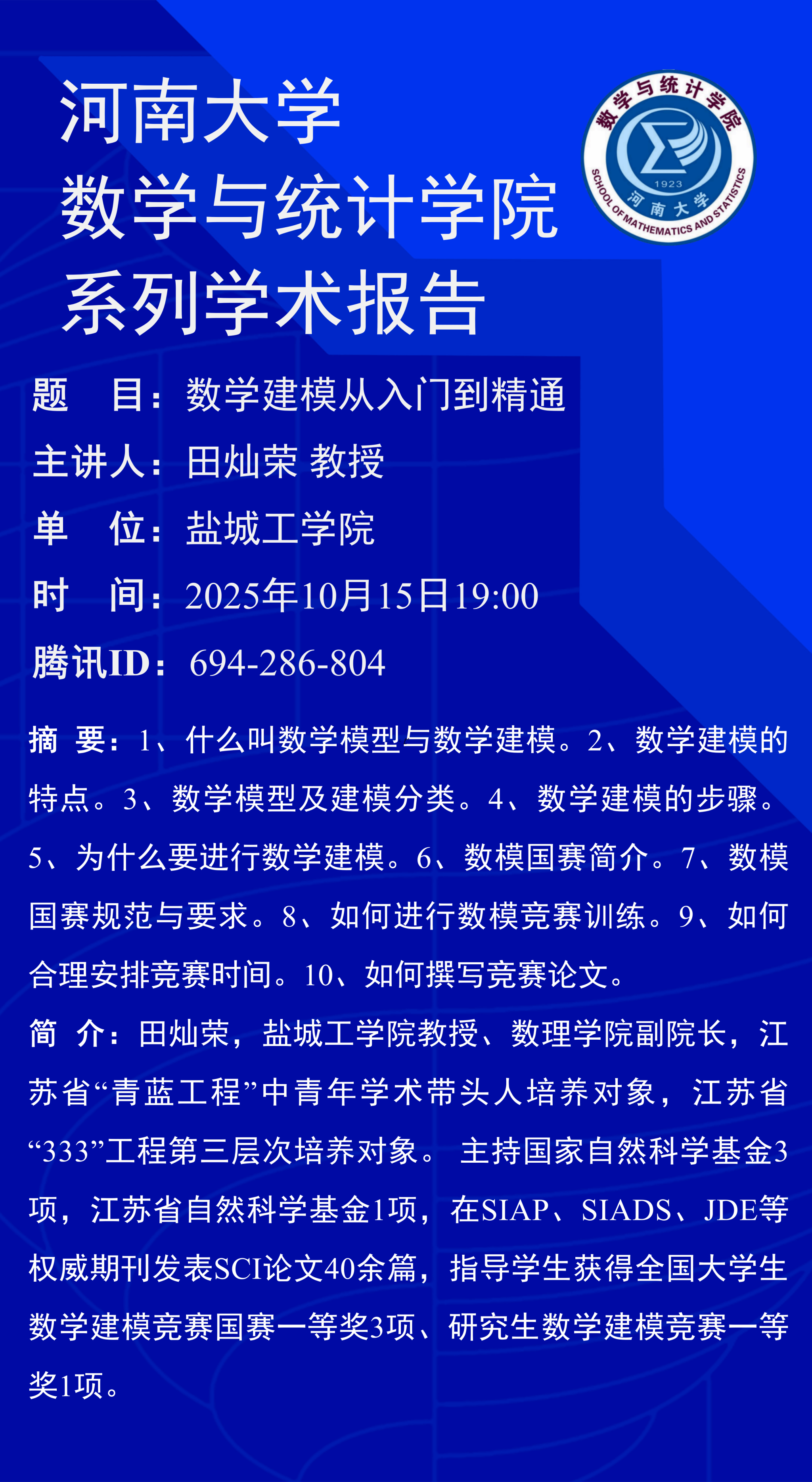 田灿荣:数学建模从入门到精通(时间:10月15日)