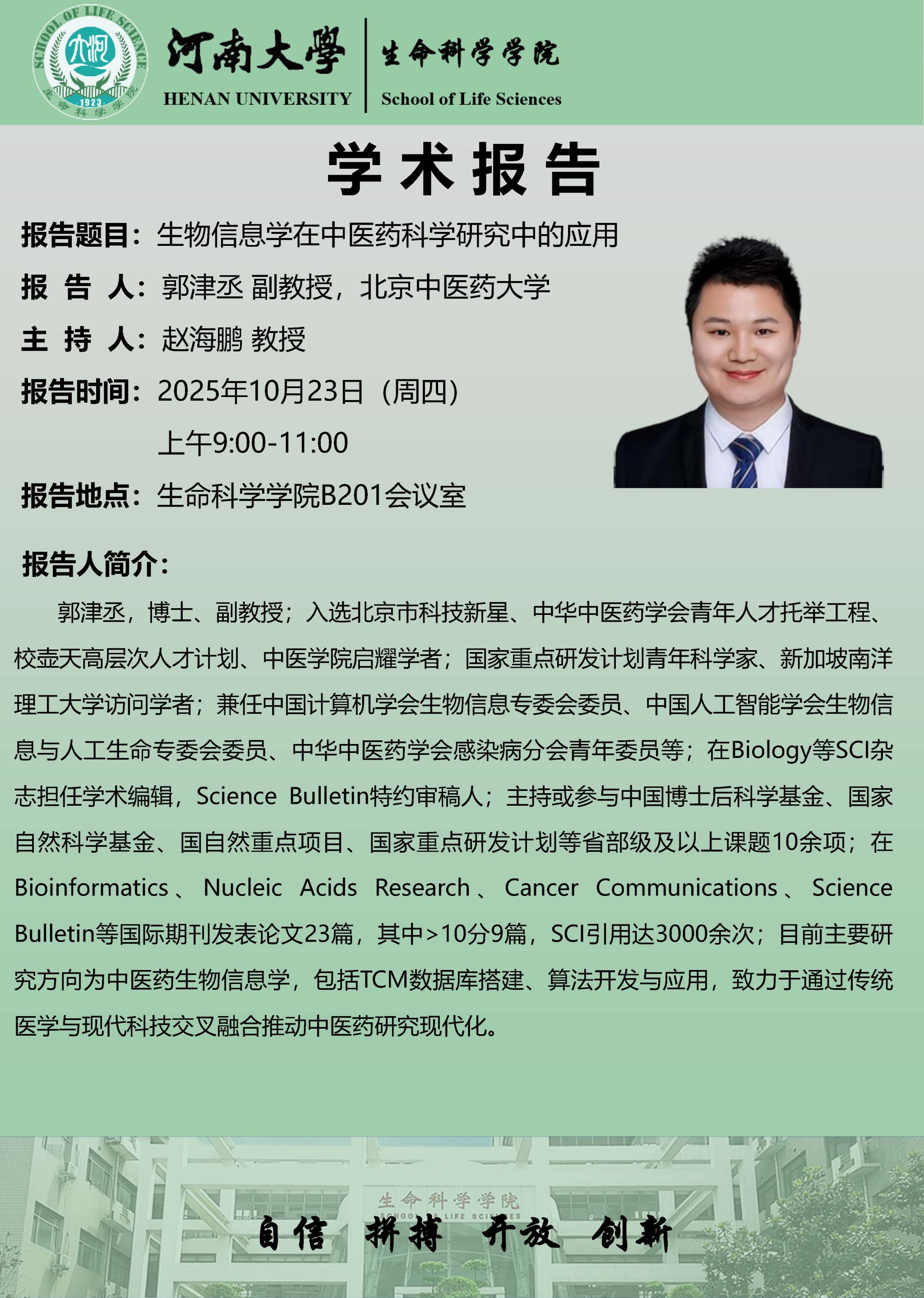 郭津丞:生物信息学在中医药科学研究中的应用(时间:10月23日)