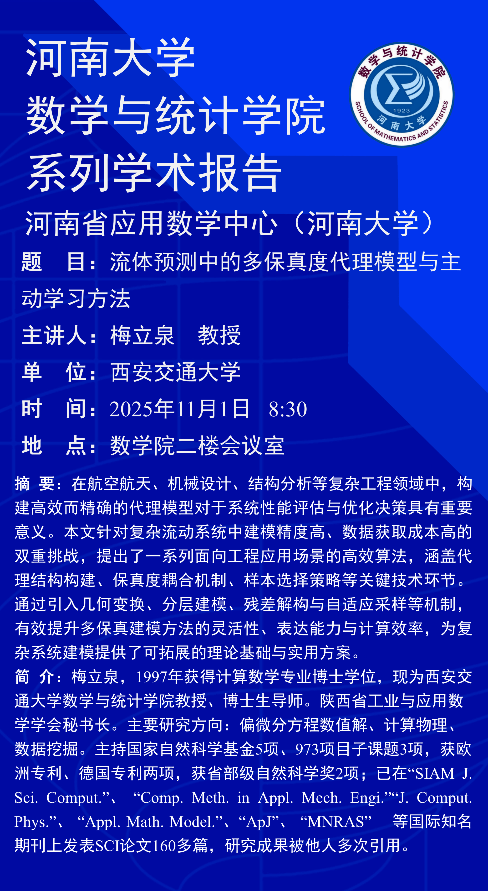 梅立泉:流体预测中的多保真度代理模型与主动学习方法(时间:11月1日)