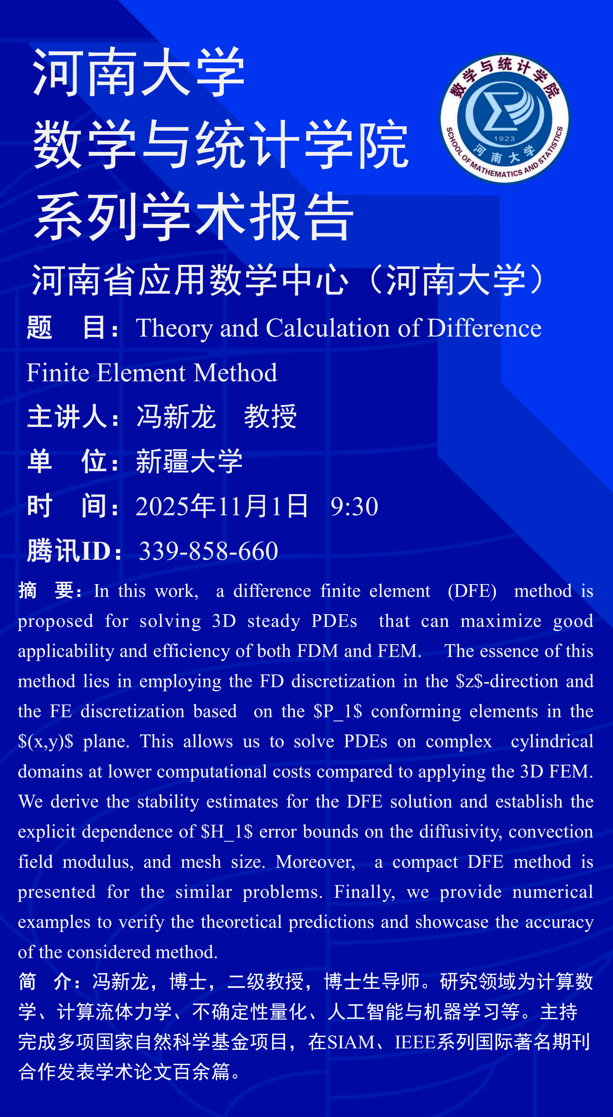 冯新龙:Theory and Calculation of Difference Finite Element Method(时间:11月1日)