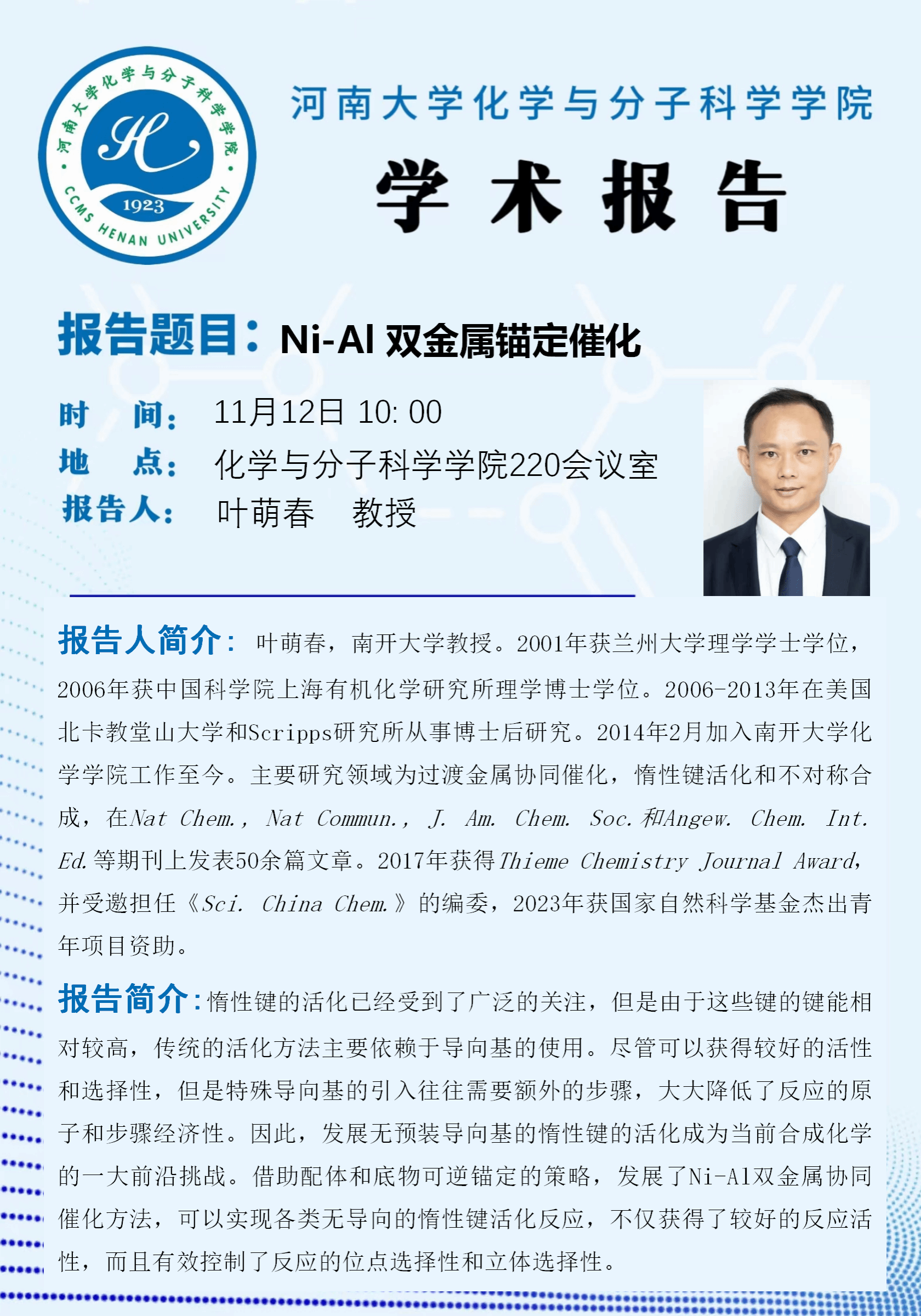 叶萌春:Ni-Al 双金属锚定催化(时间:11月12日)