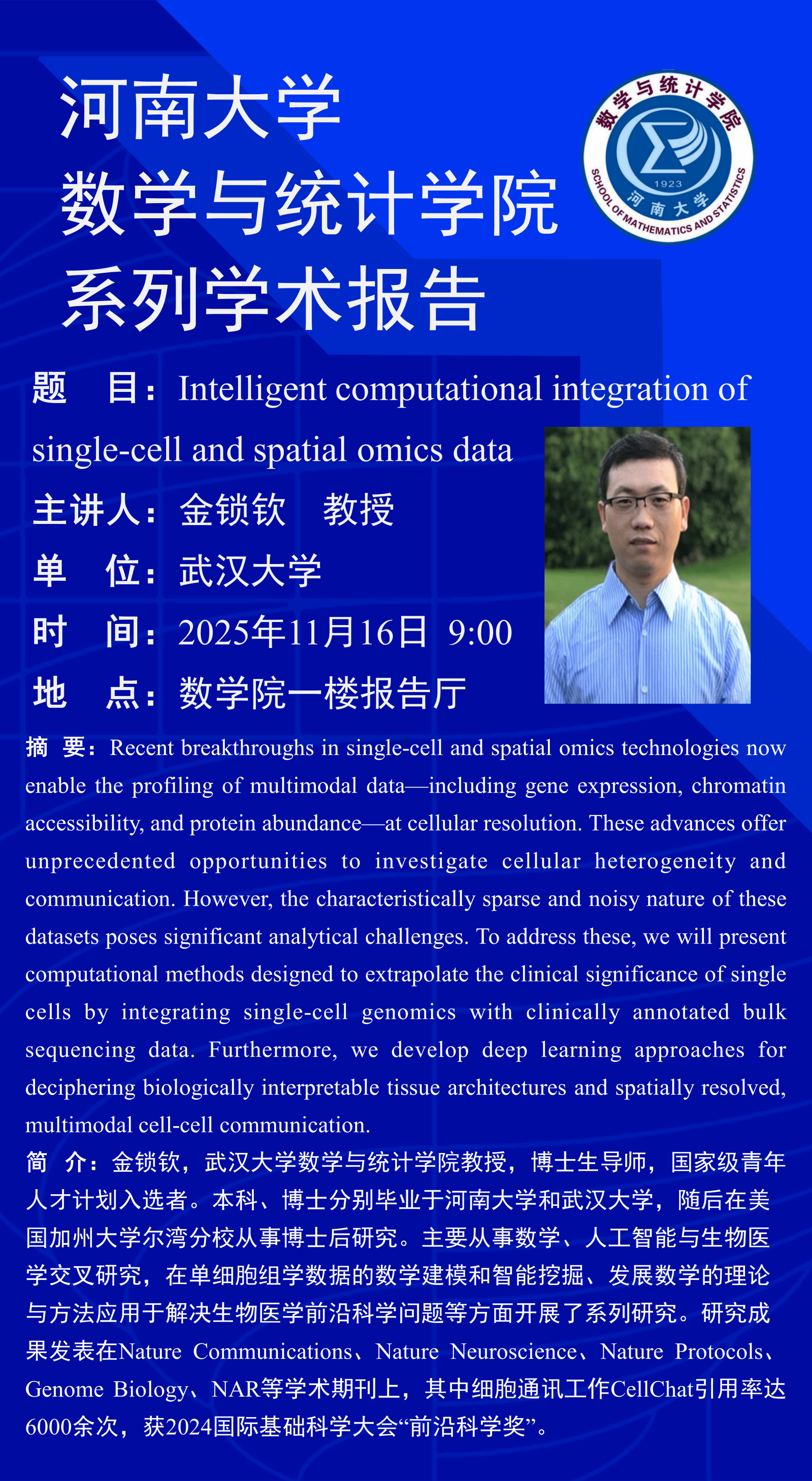 金锁钦:Intelligent computational integration of single-cell and spatial omics data(时间:11月16日)