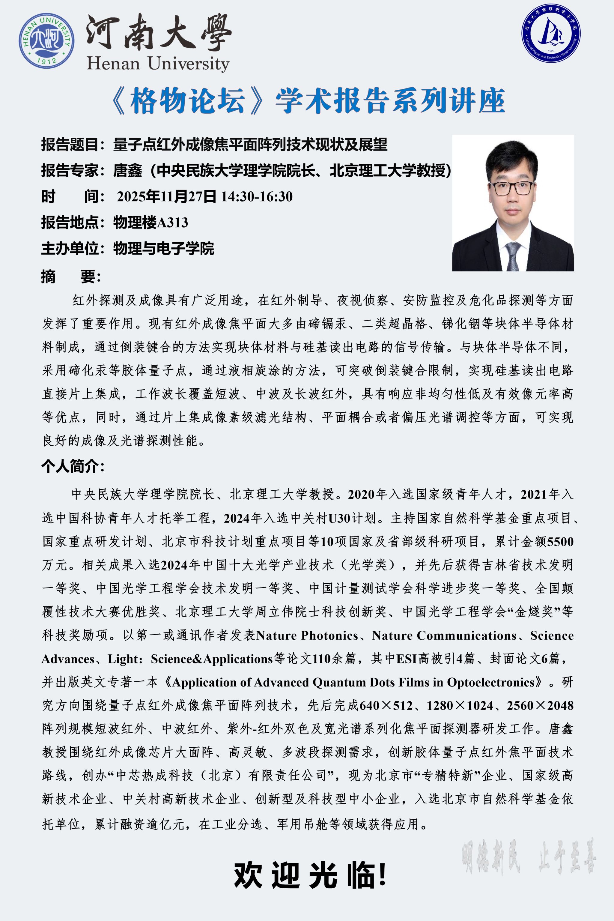 唐鑫:量子点红外成像焦平面阵列技术现状及展望(时间:11月27日)