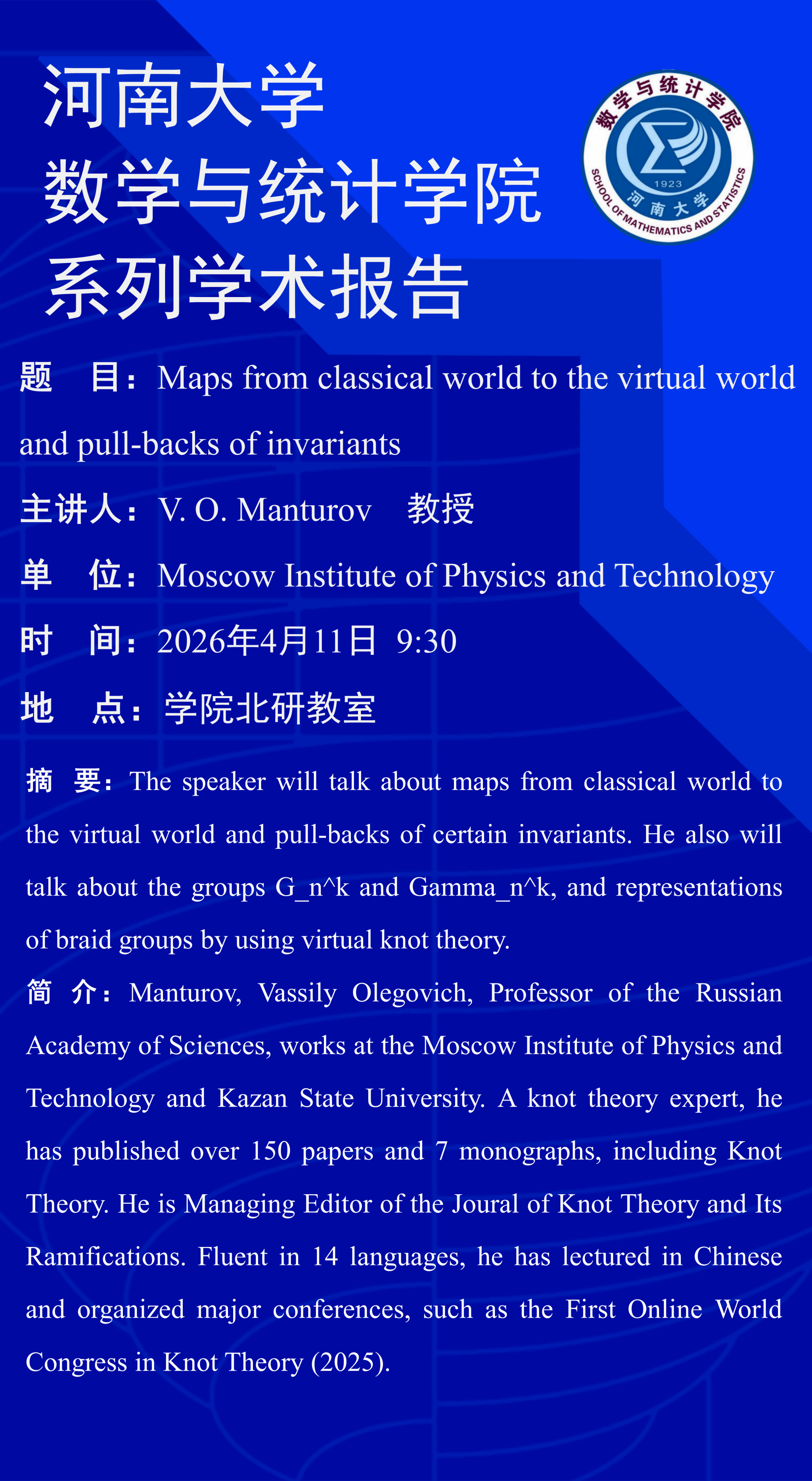 V. O. Manturov:Maps from classical world to the virtual world and pull-backs of invariants(时间:4月11日)