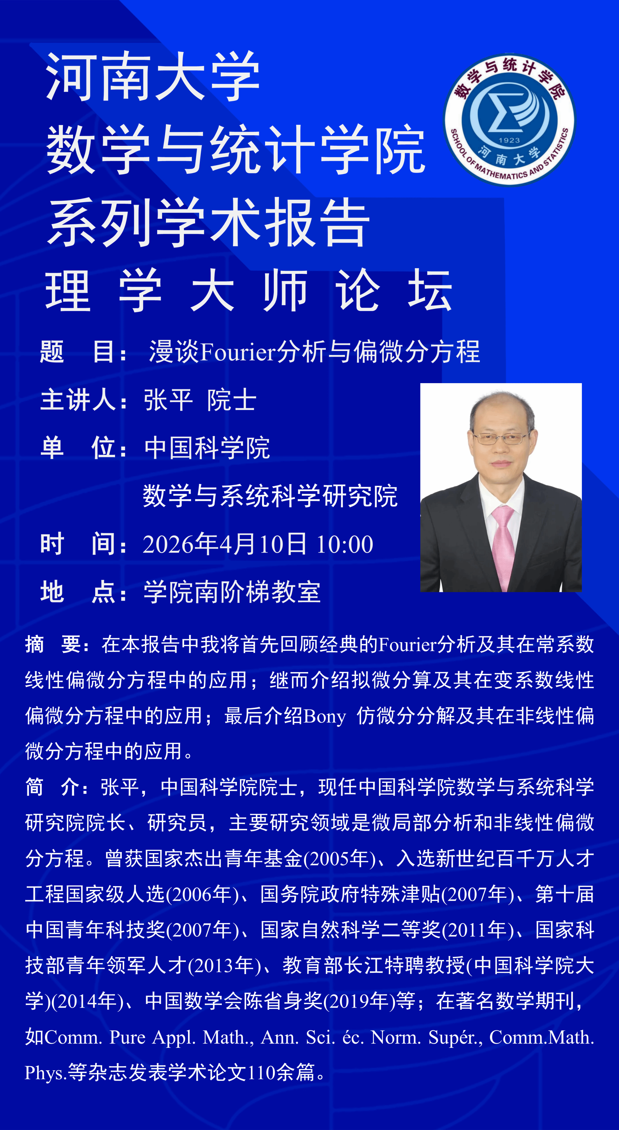 张平:漫谈Fourier分析与偏微分方程(时间:4月10日)