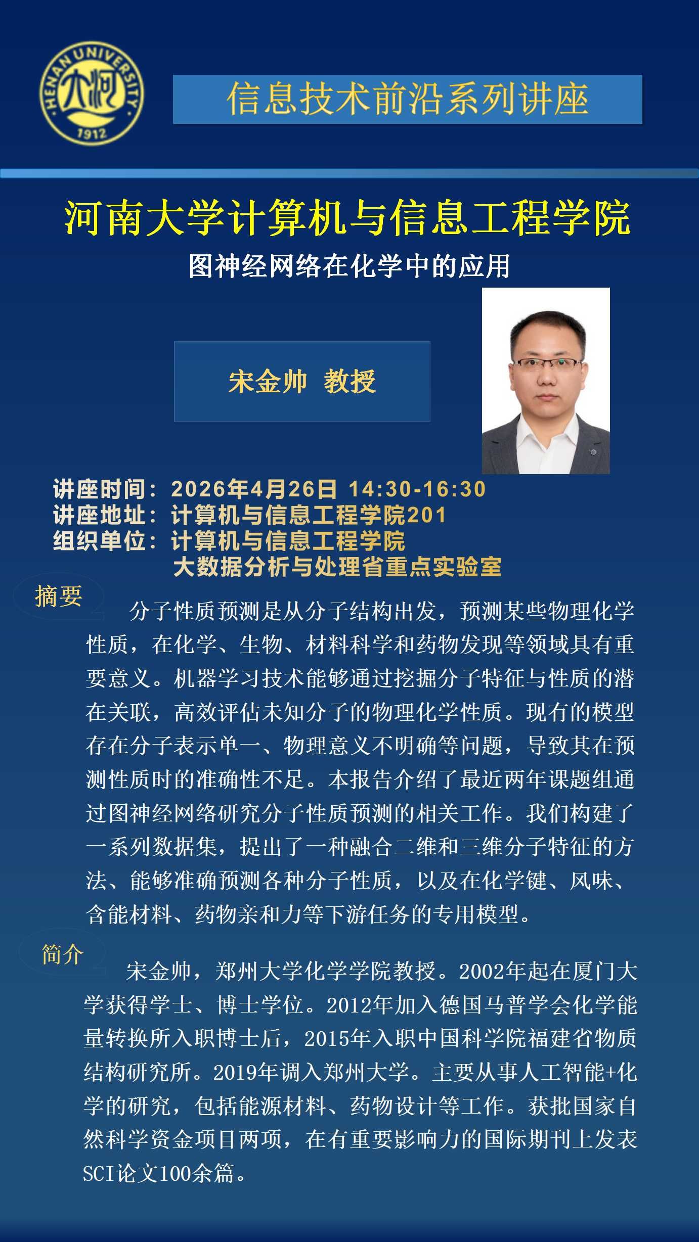 宋金帅:图神经网络在化学中的应用(时间:4月26日)