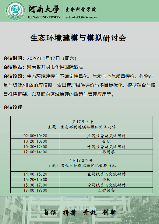 生态环境建模与模拟研讨会(时间:1月17日)