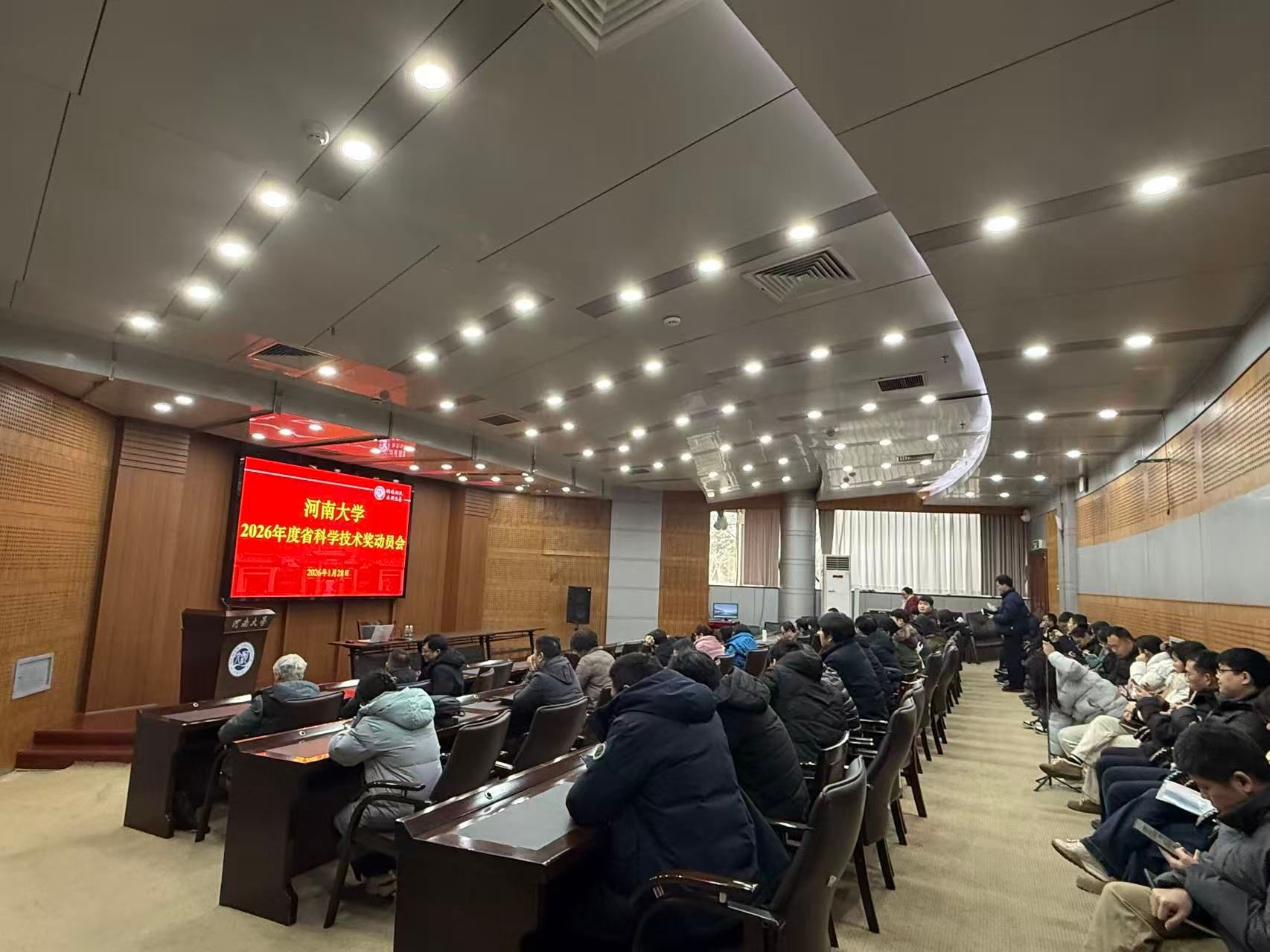 为切实保障2026年度河南省科学技术奖提名申报工作有序推进,科学技术研究院对全校各单位的拟申报情况开展了全面摸底排查。1月28日,我校在金明校区行政楼一楼报告厅召开2026年河南省科学技术奖动员会。各学院主管院长、科研团队负责人以及拟申报省科学技术奖的成果完成人参加会议。会议由科学技术研究院副院长李彦明主持。