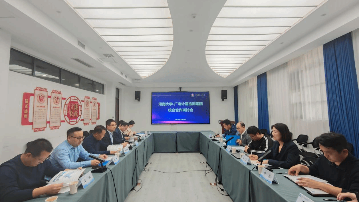 3月25日,河南广电计量检测有限公司总经理彭磊到我校对接洽谈围绕学科建设、科研攻关、人才培养、成果转化等方面开展校企合作交流。河南省军民融合发展研究院院长冯有治、河南大学人工智能学院党委书记尹猛及相关学院科研团队参加座谈。