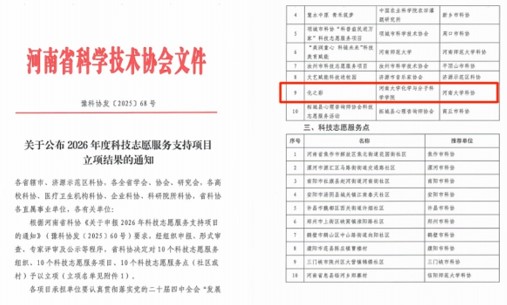 近日,河南省科协传来捷报,化学与分子科学学院凭借鲜明的化学学科特色、扎实的工作基础与创新的服务模式,申报的“化之彩”成功入选2026年河南省科技志愿服务支持项目,这是我校在科普服务领域斩获的又一重要成果,彰显了学校在科技志愿服务工作中的突出实力与广泛认可。