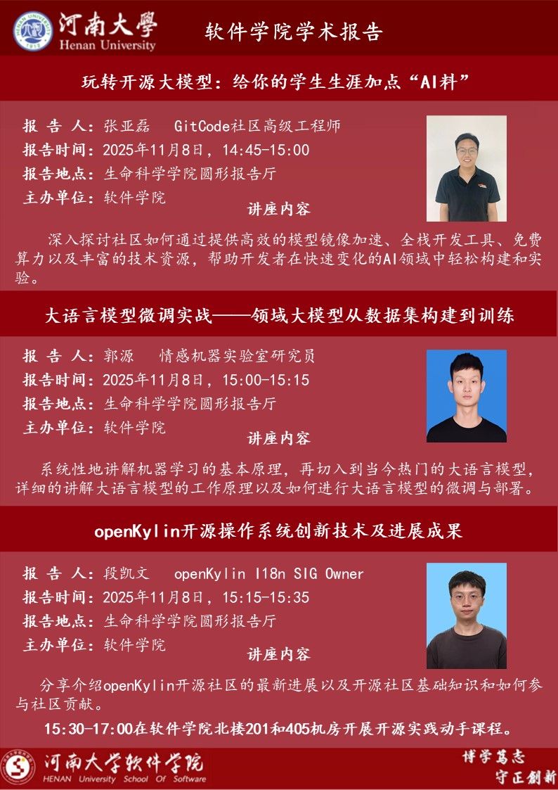 张亚磊、郭源、段凯文:开放原子校源行(河南大学站)(时间:11月8日)