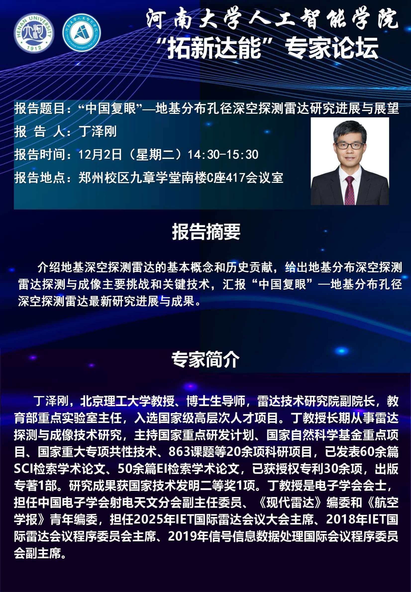 丁泽刚:“中国复眼”—地基分布孔径深空探测雷达研究进展与展望(时间:12月2日)