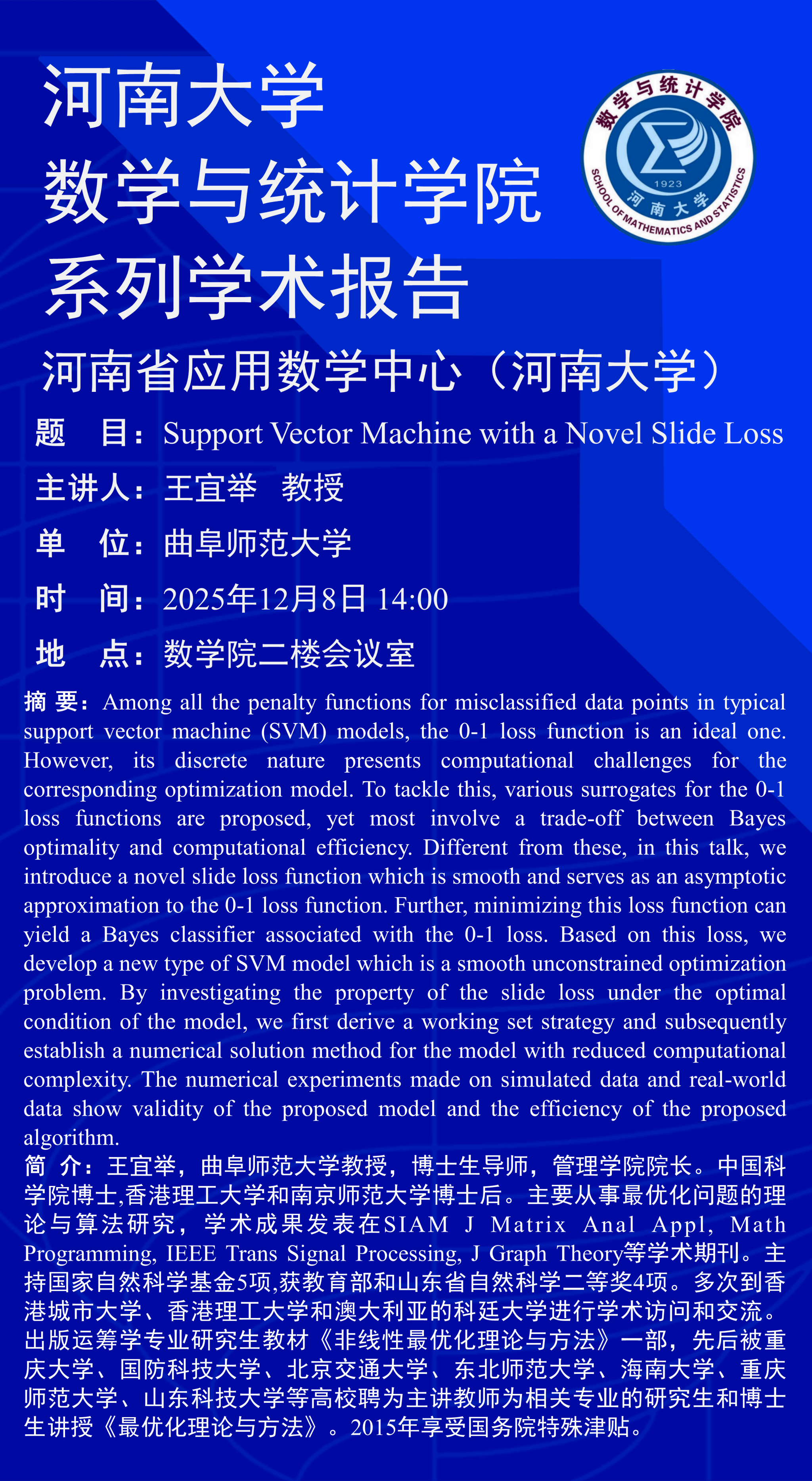 王宜举:Support Vector Machine with a Novel Slide Loss(时间:12月8日)