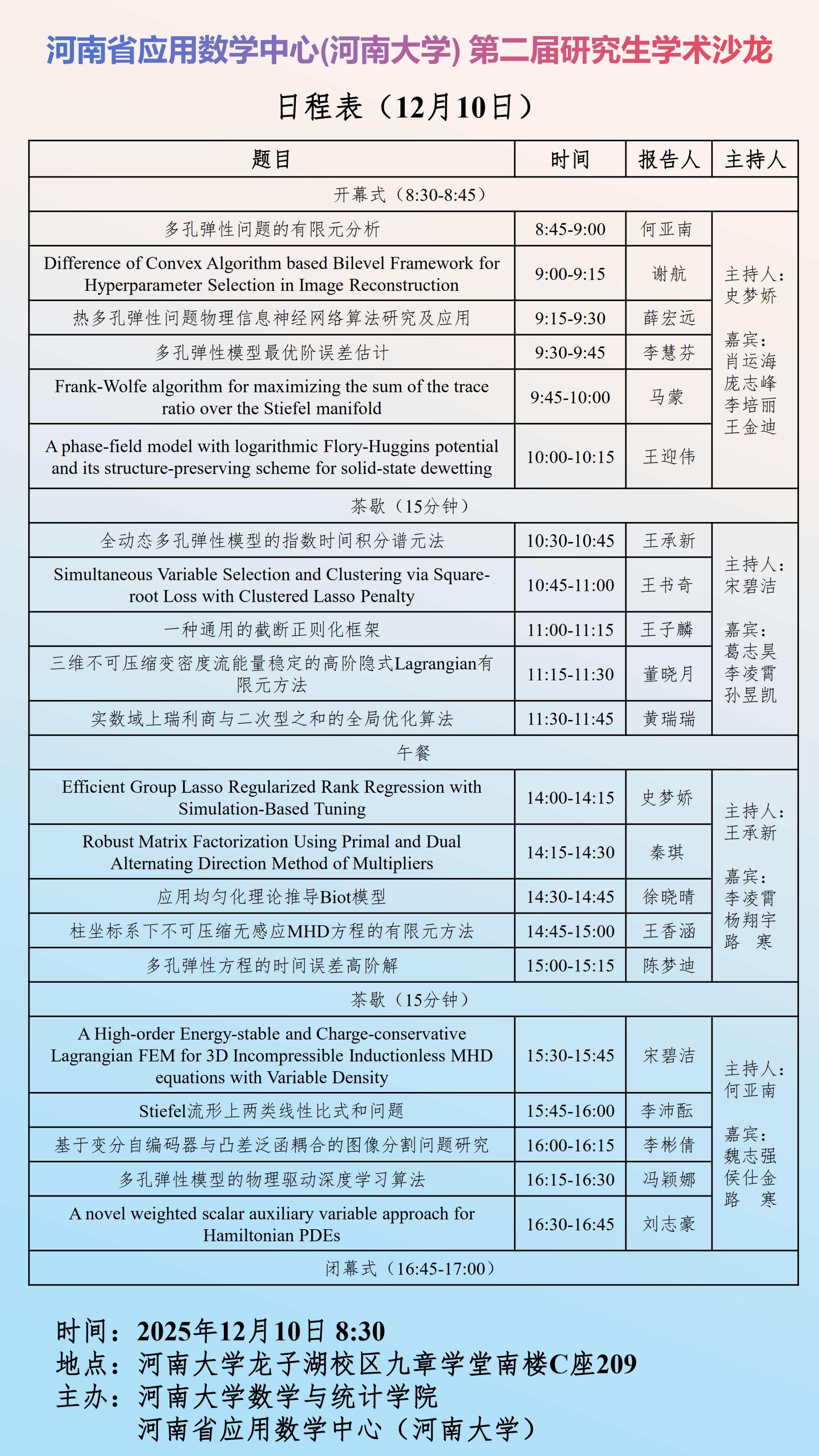 河南省应用数学中心(河南大学) 第二届研究生学术沙龙 (时间:12月10日)