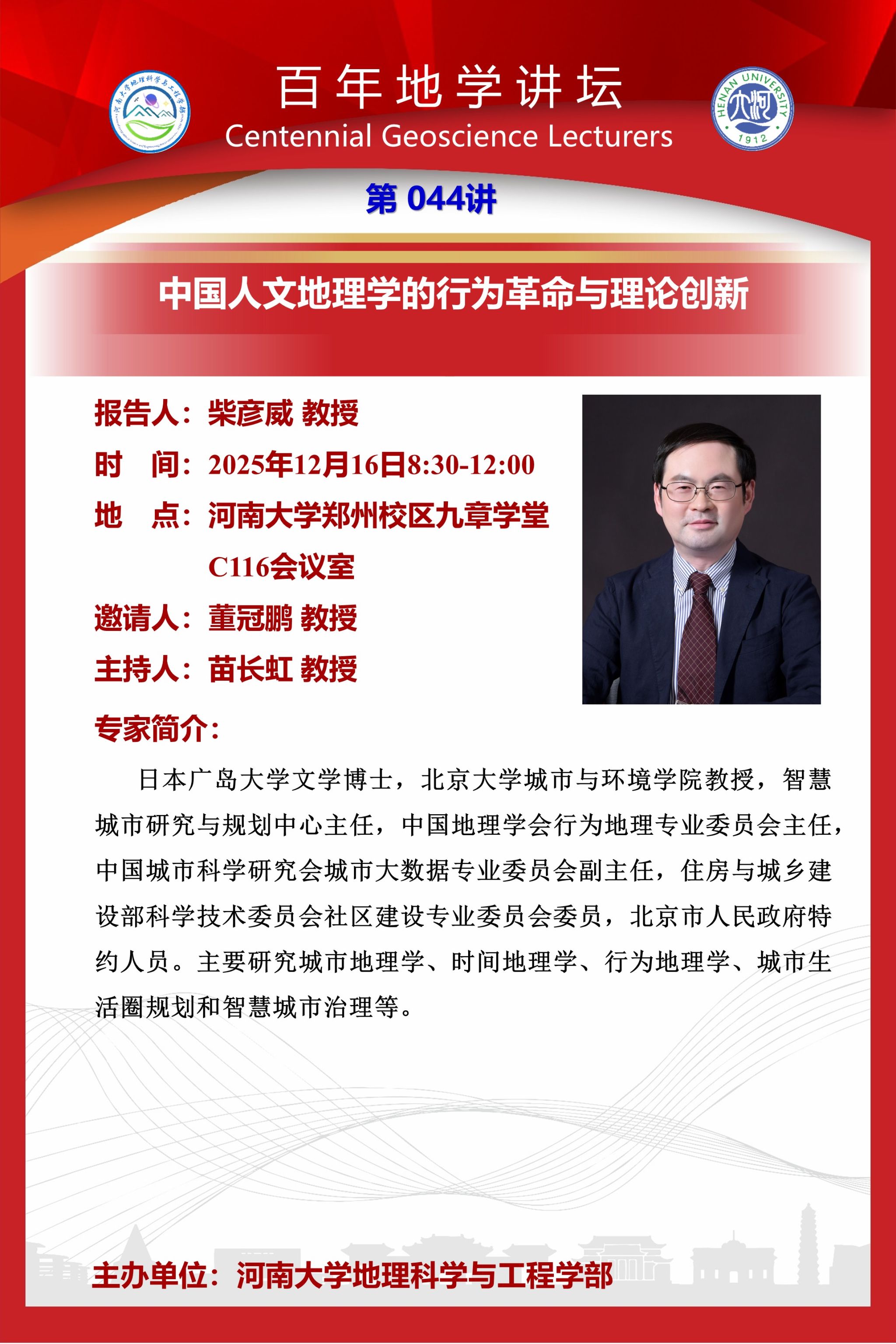 柴彦威:中国人文地理学的行为革命与理论创新(时间:12月16日)