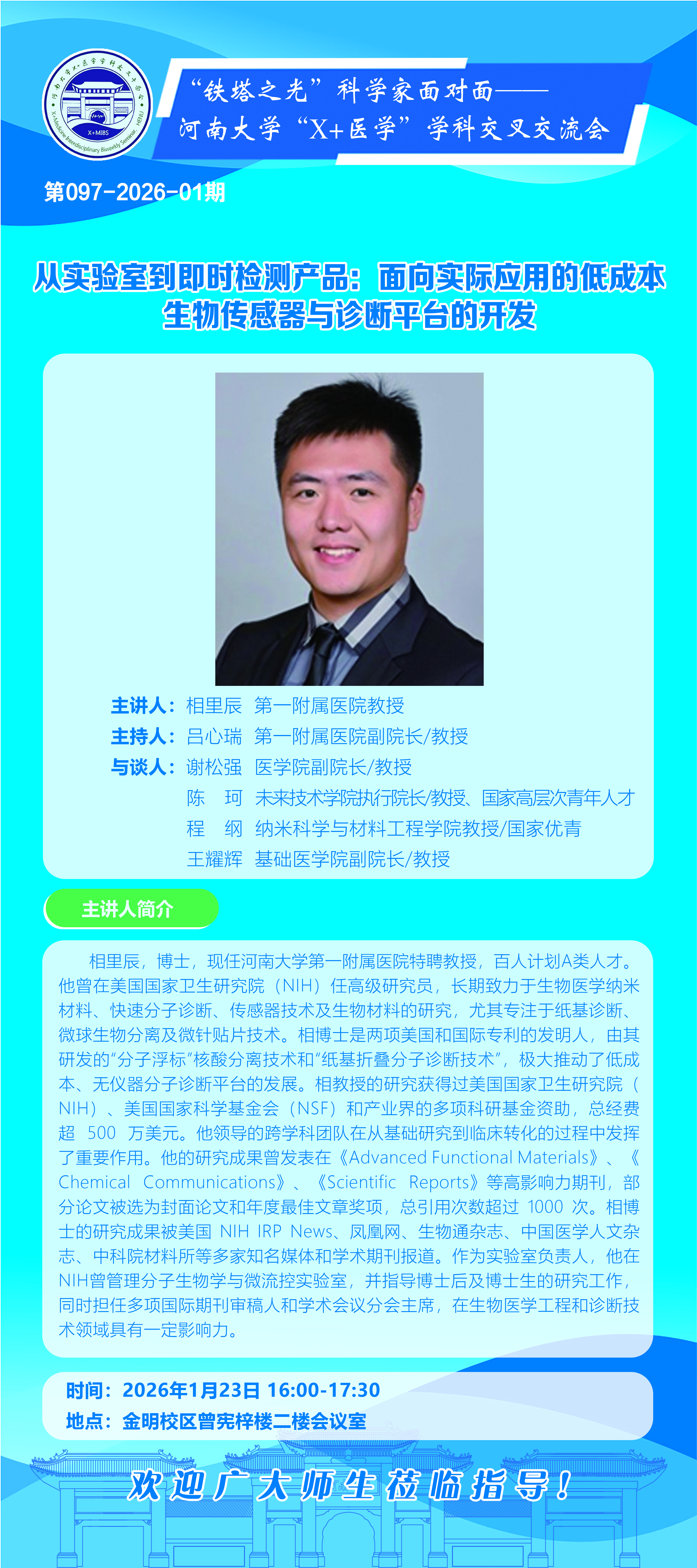 相里辰:从实验室到即时检测产品:面向实际应用的低成本生物传感器与诊断平台的开发(时间:1月23日)
