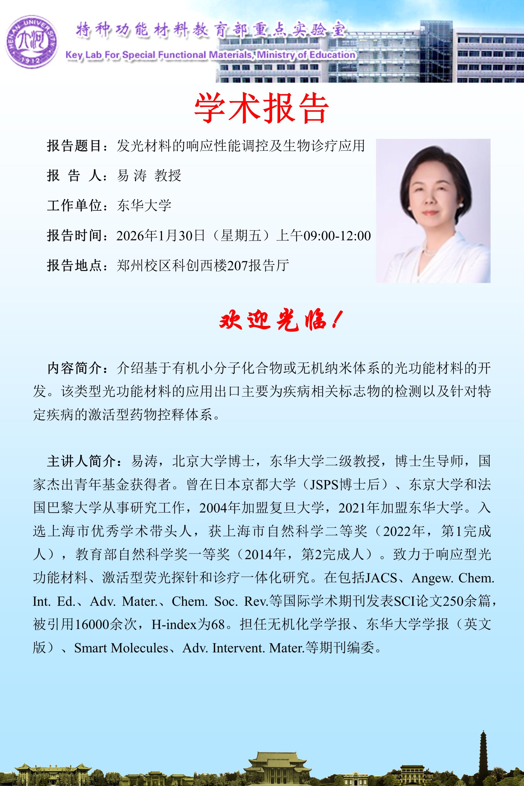 易涛: 发光材料的响应性能调控及生物诊疗应用(时间:1月30日)