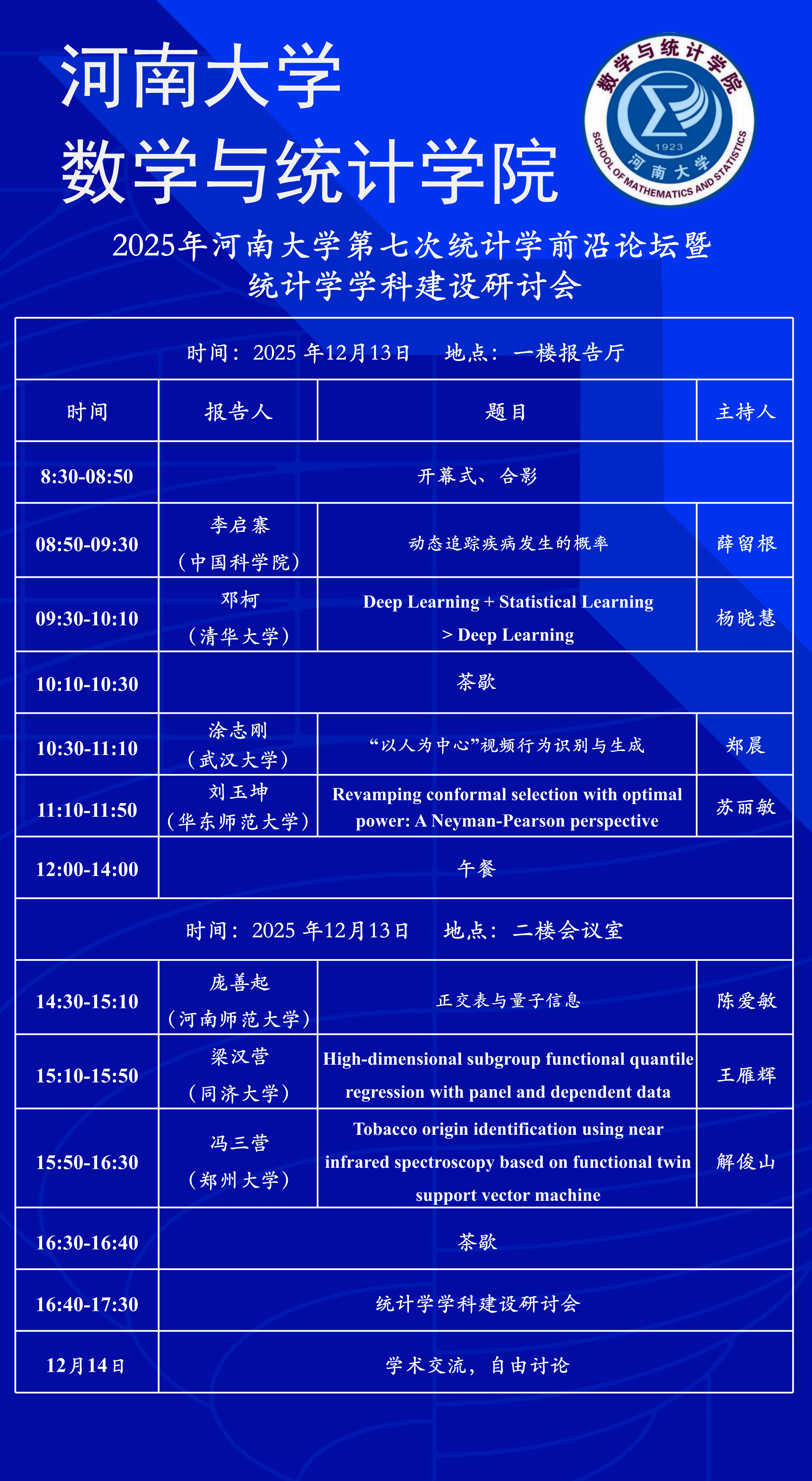 2025年河南大学第七次统计学前沿论坛暨统计学学科建设研讨会 (时间:12月12日)